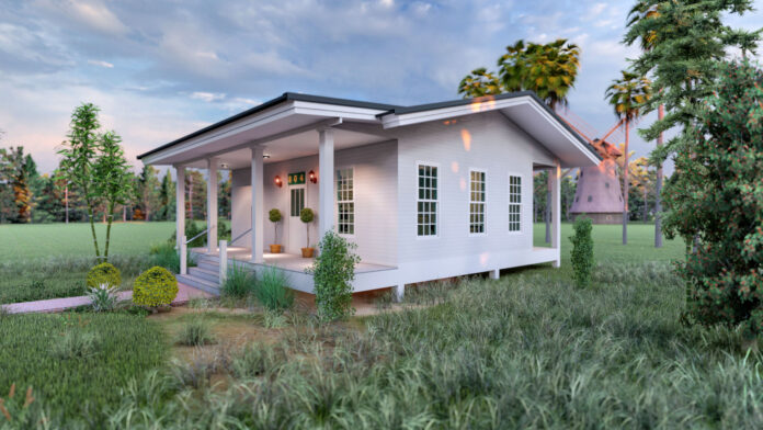 บ้านหลังนี้ออกแบบเรียบง่ายในสไตล์วินเทจ เหมาะสำหรับทำเป็นบ้านพักตากอากาศหรือบ้านสวน เพราะตัวบ้านมีขนาดไม่ใหญ่มาก จึงเหมาะสำหรับการไปพักผ่อนแบบชั่วครั้งชั่วคราว โดยตัวบ้านเป็นบ้านชั้นเดียว ยกพื้นขึ้นสูงเล็กน้อย ด้านหน้ามีระเบียงขนาดเล็ก เพื่อให้เป็นพื้นที่ในการนั่งเล่นในช่วงเวลาของการพักผ่อน